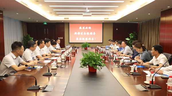 9月4日,成都市新都区委书记许兴国,副区长刘清,成都香城投资集团有限公司董事长张启明一行十人莅临米兰online(中国)视察交流,集团公司党委书记、董事长陈先瑞,总经理王建红热情迎接。