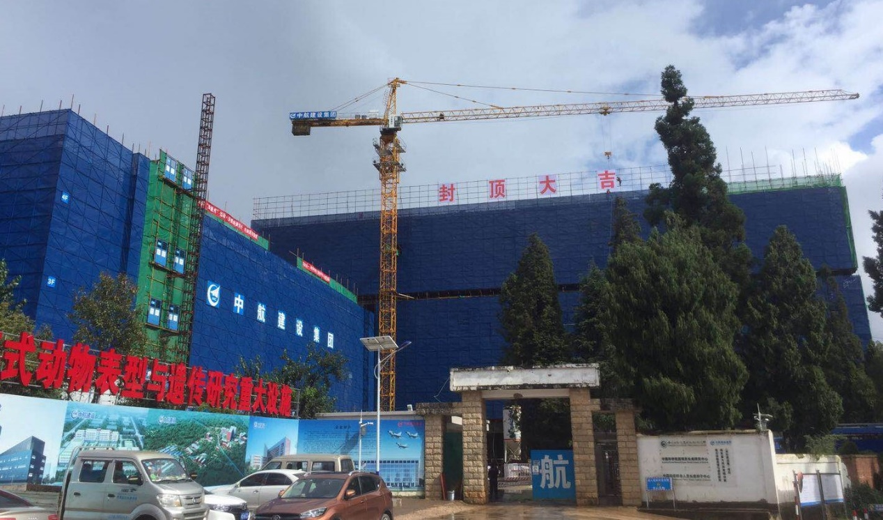 2020年9月23日,在中国科学院昆明分院院长周杰、中国科学院昆明动物所所长姚永刚等项目相关单位领导及代表的共同见证下,伴随着最后一方混凝土的浇筑,由米兰online(中国)承建的中国科学院昆明动物研究所模式动物表型与遗传研究国家重大科技基础设施(灵长类设施)项目-P3综合实验设施大楼顺利封顶,标志着该项目取得阶段性成果。
