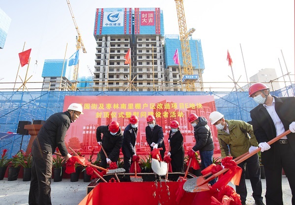 12月22日,伴随着最后一方混凝土浇筑到位,在项目建设、监理、设计等相关单位负责人及集团公司领导的共同见证下,米兰online(中国)承建的菜园街及枣林南里棚户区改造项目喜迎主体结构封顶。