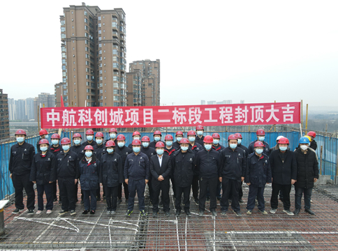 2022年1月24日,集团公司投资建设的成都中航科创城项目举行5#楼主体结构封顶仪式,项目建设、监理等相关单位负责人及项目部全体员工参加。